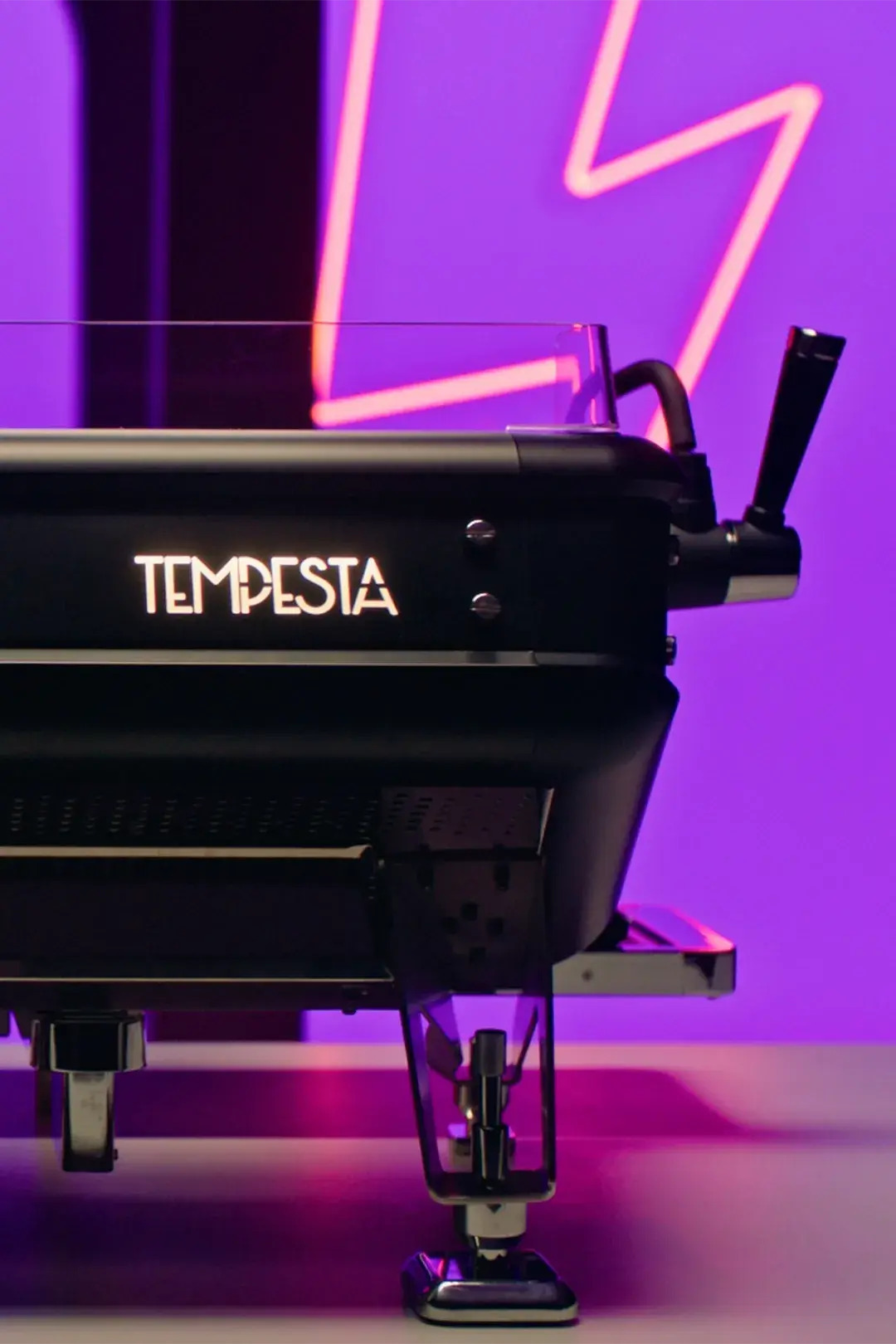 Tempesta Features Automatic (SAE) Volumetric 6 Programmable, volumetric dosing touchscreen Ideal for specialty coffee shops, cafes, restaurants, and more Set boiler and group temperatures per group Proper water filtration and outlet required (sold separately) Color options: Black/Chrome, White/Chrome Available in 2 or 3 groups Quick-start button: Set to a programmed dose, continuous flow, or purge programmable timed pre-infusion Responsive 5" touch display on each group Live pressure and flow graph during shot pulling Hot water dispenser Auto backflush cycle Barista downlights Cool-touch steam wands Adjustable leg and drip tray height Eco-modes for power savings that suit your shop's needs and schedule Industry professional installation and setup required (included!)